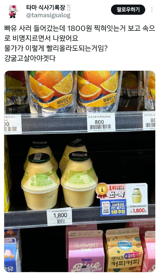 바나나우유 가격근황