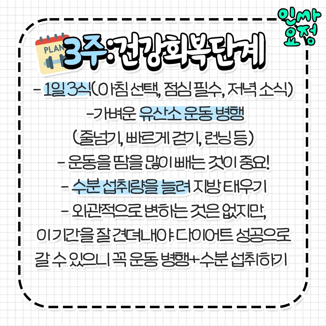 굶는건 정말 안좋으니 식사 꼭 챙기면서 건강 다이어트 하세요 ! -3kg라도 도전 !