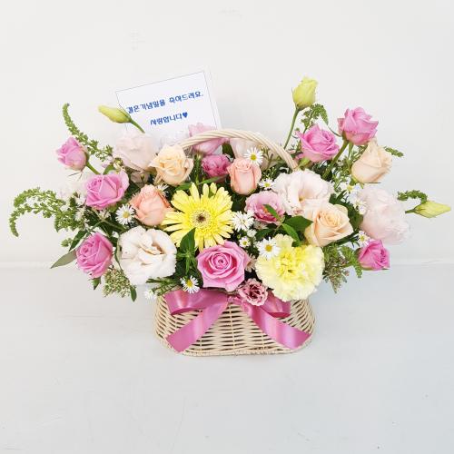이쁜 파스텔 색감으로 꾸며진 장미혼합 꽃바구니!