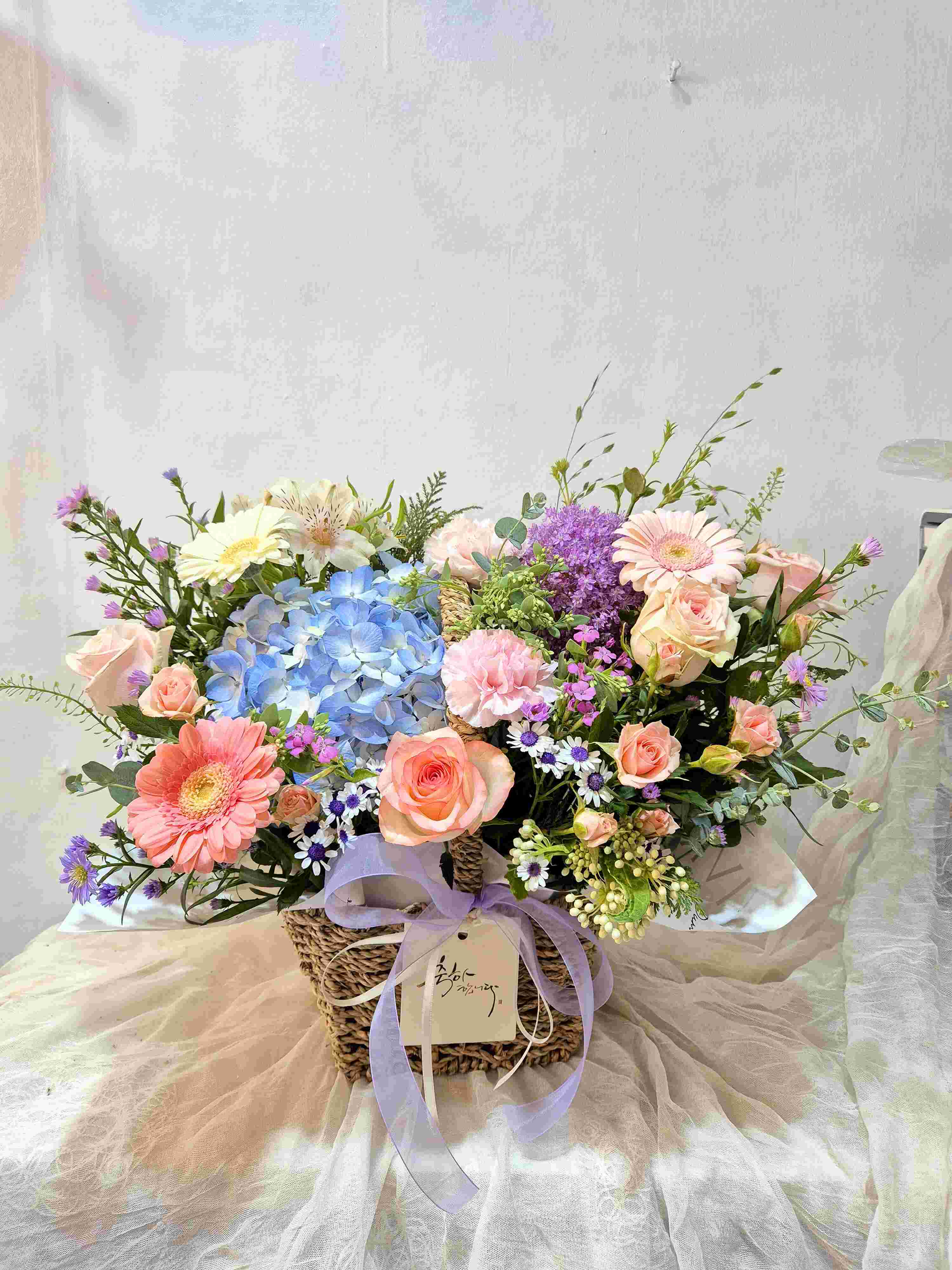 출산축하수국바구니